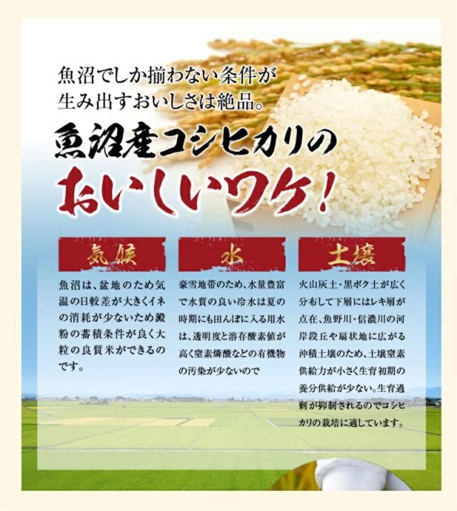 ●南魚沼地区は魚沼産コシヒカリ発祥の地で食味ランキング特A地区に認定されている日本を代表する美味しいコシヒカリの産地です。