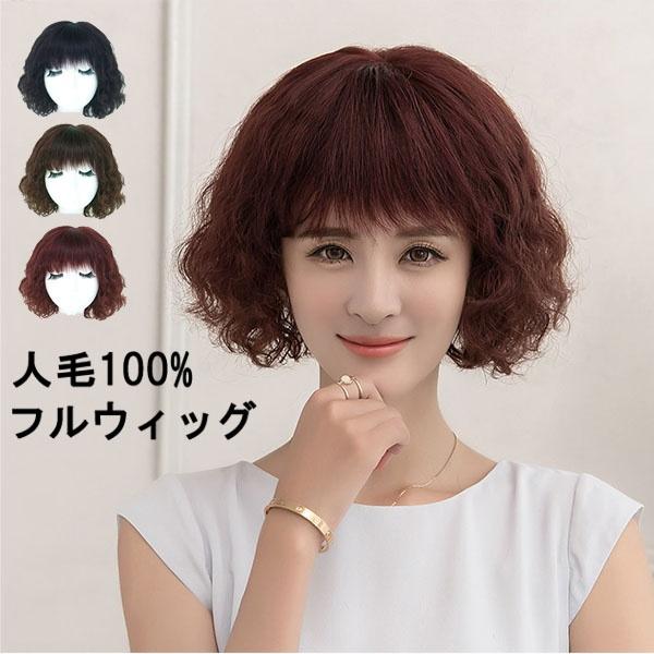 フルウィッグ レディースウィッグ 人毛 お母さん 普段使い 巻き毛 女性用 カツラ 頭頂部手植え ウィッグ 中年女性 ショートウィッグ かつら ブラウン ブラック ワインレッド 30代 40代 50代 dm036t2t2s3