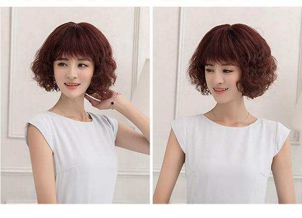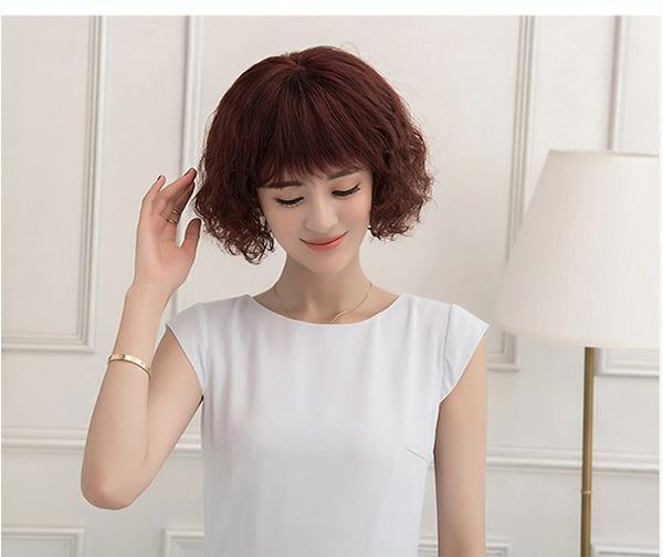 【送料無料】フルウィッグ レディースウィッグ 人毛 お母さん 普段使い 巻き毛 女性用 カツラ 頭頂部手植え ウィッグ 中年女性 ショートウィッグ かつら ブラウン ブラック ワインレッド 30代 40代 50代