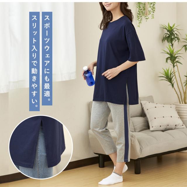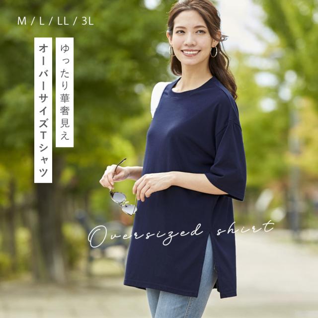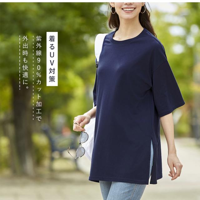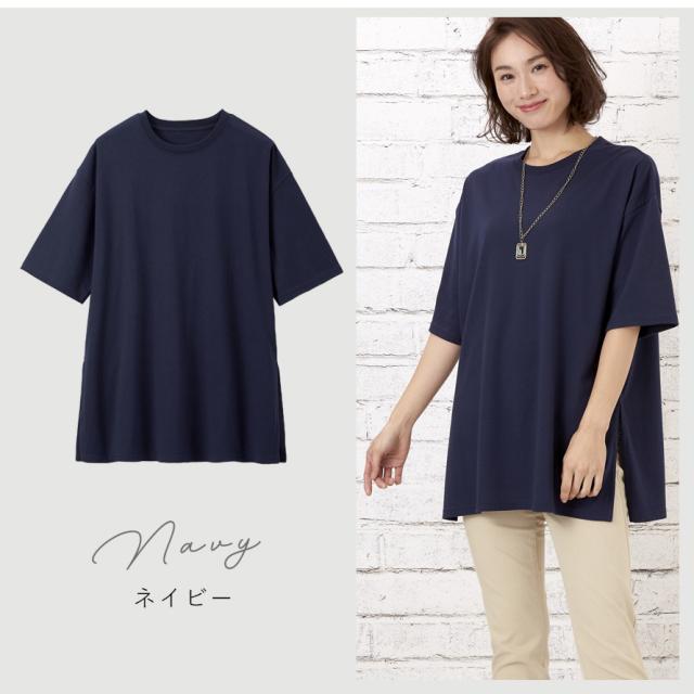 Tシャツ,tシャツ,レディース,uvカット,トップス,春夏,オーバーサイズ,肩幅,身幅,着丈,大きめ,大きい,ビッグシルエット,春,夏,日焼け防止,紫外線カット,吸汗,速乾,無地,ビッグシルエット,ネイビー,紺,ピンク,M,L,LL,3L,おしゃれ,かわいい,綿,綿混,ドロップショルダー,お尻が隠れる,ロング,ロング丈,丈長,タテ長シルエット,体型カバー,着痩せ,細見え,UV,uv,紫外線,日焼け,紫外線対策,首,日焼け対策,防止,日よけ,日除け,ロングスリット,スリット,クルーネック,丸首,ホームウェア,部屋着,着回し,コーデ,お洒落,オシャレ,可愛い,軽い,柔らか,快適,心地よい,カジュアル,ベーシック,シンプル,女性,大人,主婦,婦人,ミセス,母,母親,お母さん,おばあちゃん,祖母,女性用,婦人用,20代,30代,40代,50代,60代,お出かけ,買い物,お買い物,ショッピング,散歩,旅行,ファッション,コーディネート,贈り物,お祝い,祝い,誕生日,誕生日プレゼント,プチギフト,長寿祝い,敬老会,還暦,古希,喜寿,母の日,ベーシック,定番,ヘビロテ,普段使い,デイリー,デイリーユース,おすすめ,素材,生地,大人かわいい,大人可愛い