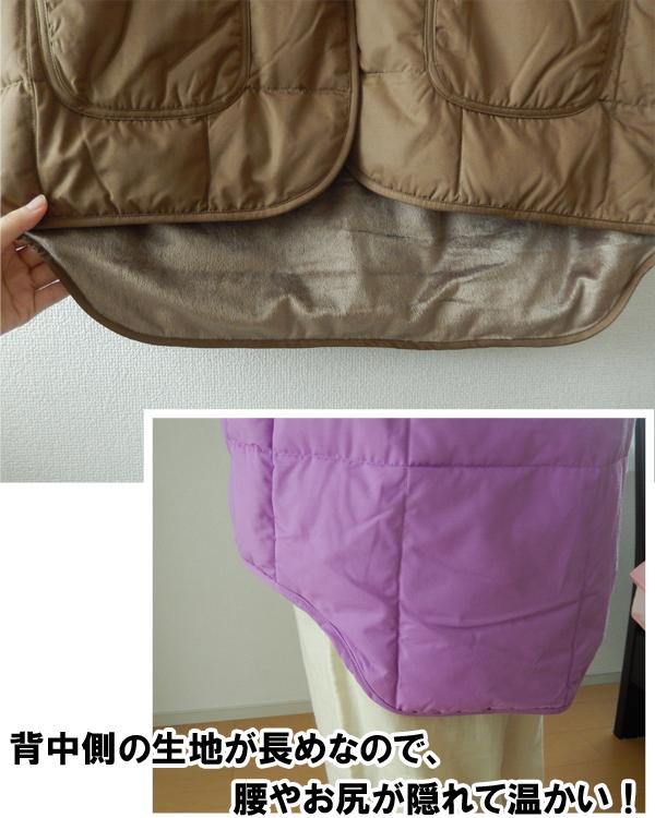 背中側の生地が長めなので、腰やお尻が隠れて温かさをキープ!
