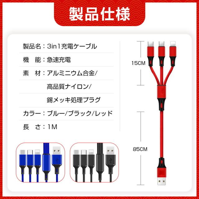 ◆商品5 充電ケーブル(3in1)