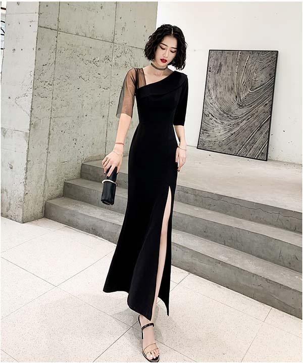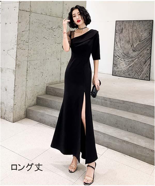 ドレス 大人 ピアノ 発表会 膝丈/ロング丈 ロングドレス 演奏会 ピアノ発表会 パーティードレス 結婚式 ワンピース 二次会 袖あり 肩出し 透明感 大人 フォーマル セクシー 韓国風 ブラック 【サイズ有XS/S/M/L/XL/2XL/3XL】 da251t2t2s3