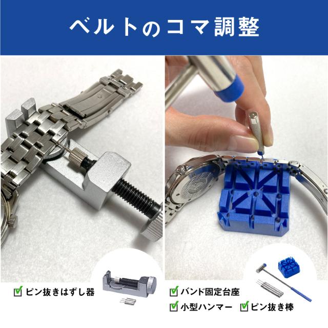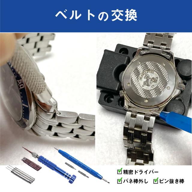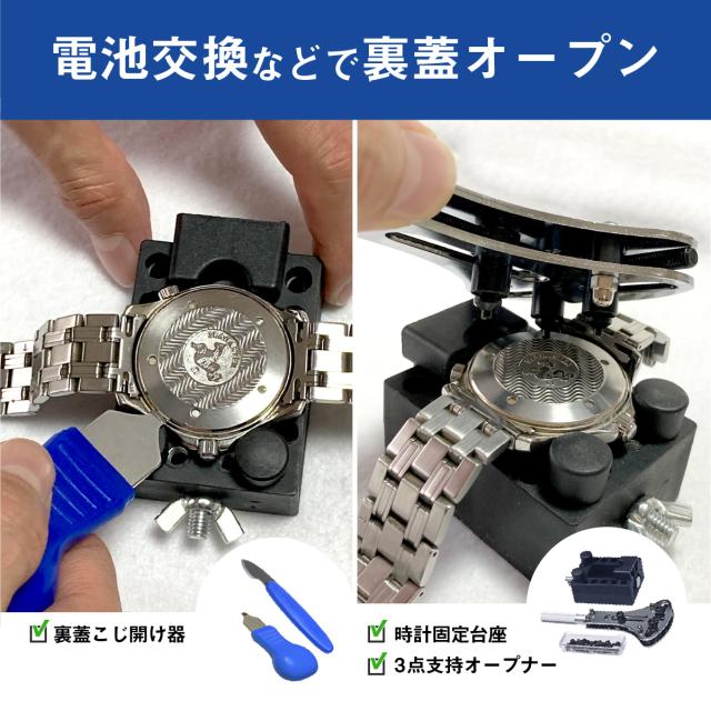・電池交換などでの裏蓋オープンやベルトのコマ調整、交換などが簡単にできます