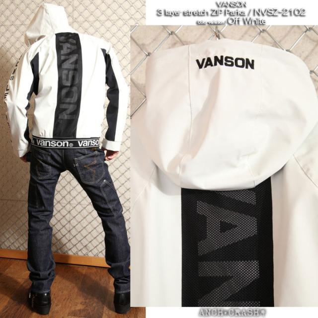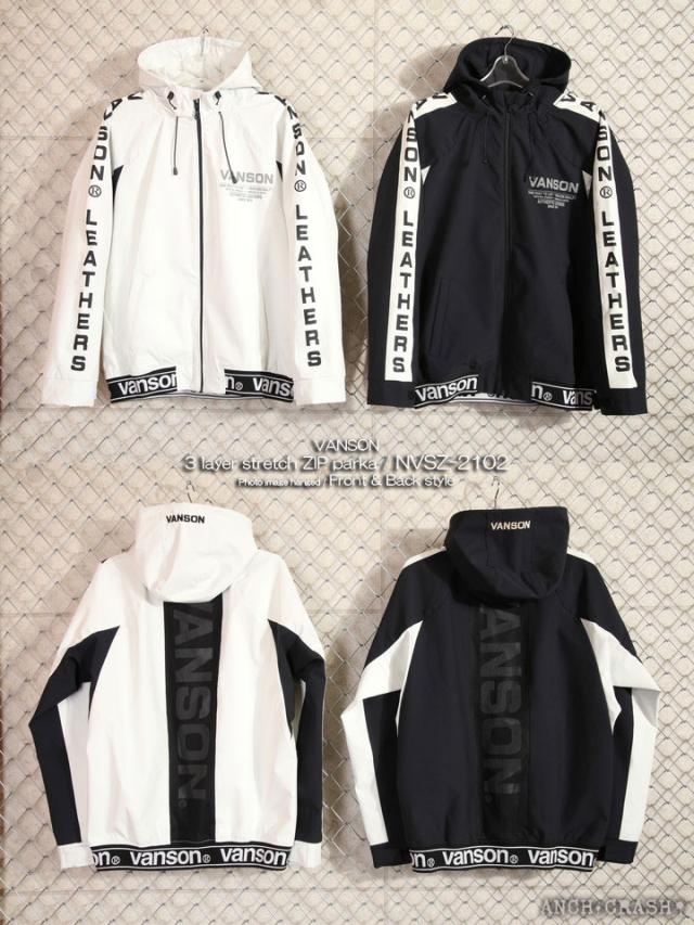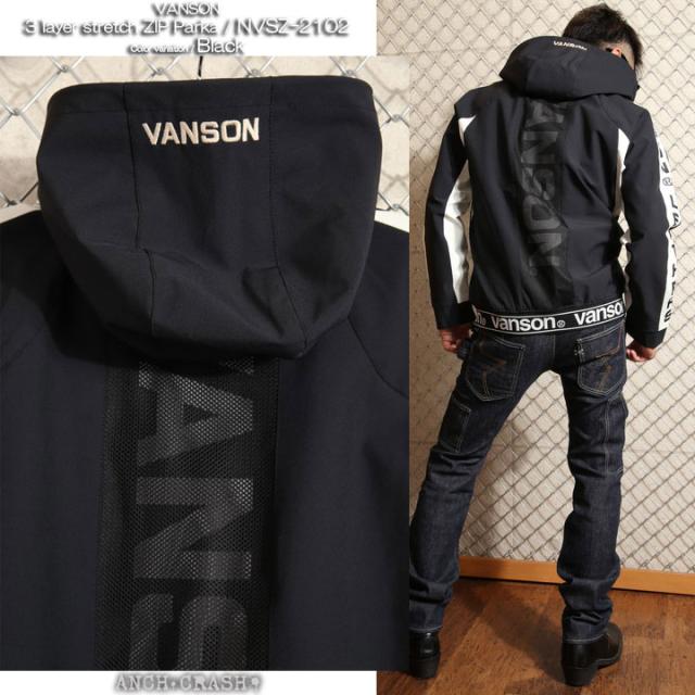 当店別注!VANSON バンソン 三層ストレッチパーカー(NVSZ-2102)刺繍 高耐水 高撥水