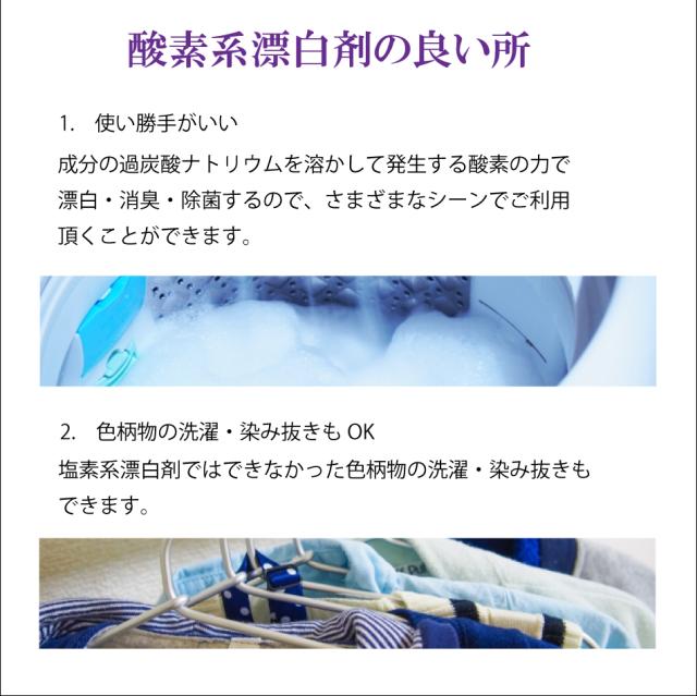酸素系漂白剤(過炭酸ナトリウム)を使用しています。