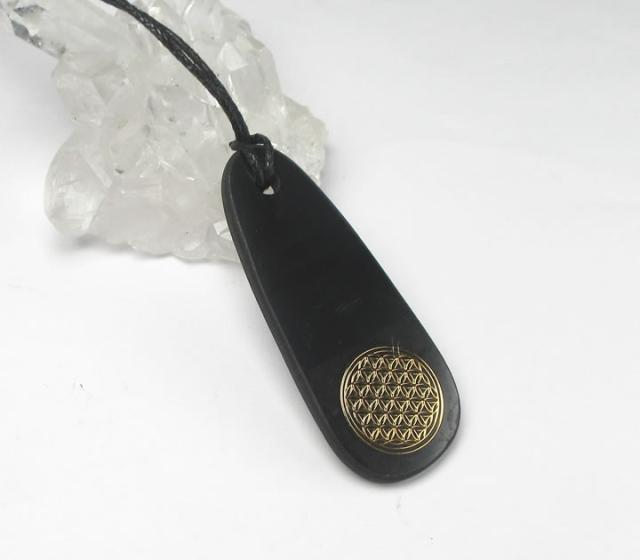 フラワーオブライフ シュンガイトペンダント ドロップ型 サイキックプロテクションとエネルギー強化 光を受け取る準備 shundrop002