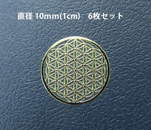 【メタル シール10mm 6枚】フラワーオブライフ 直径10mm シール6枚分 ゴールドカラー 神聖幾何学図形 folst051