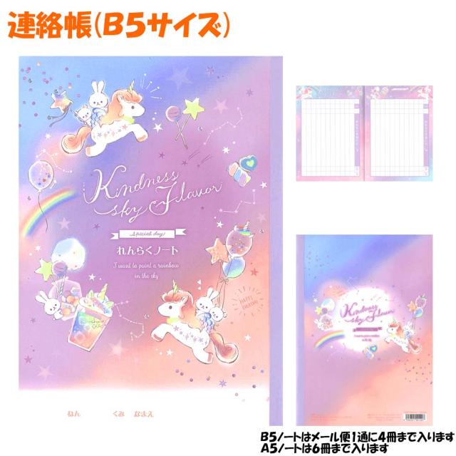 【メール便 OK】 連絡帳 連絡ノート B5 サイズ 女の子 向け ユニコーン に 乗る ウサギ と クマ カインドネススカイフレーバー クーリア おしゃれ で かわいい 文房具 の ドイブングテン