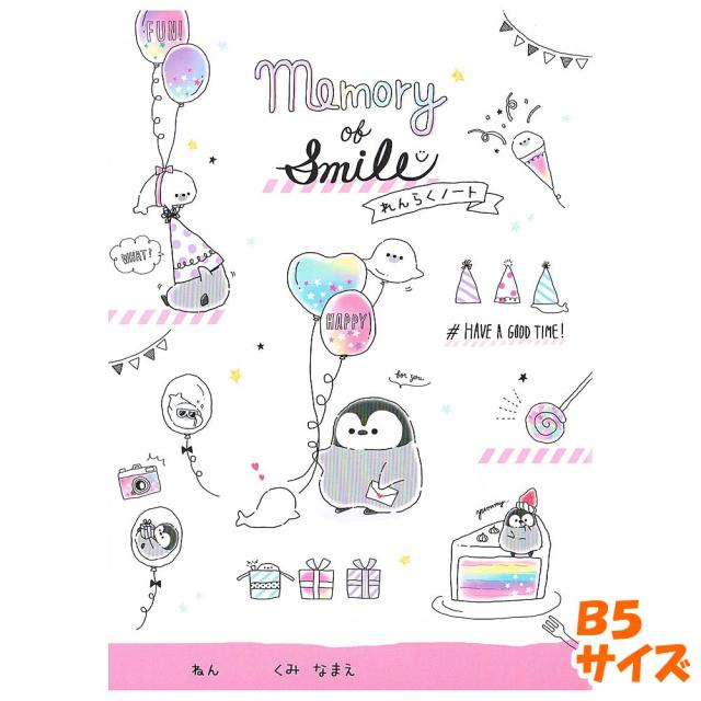 【メール便 OK】 連絡帳 連絡ノート B5 サイズ 女の子 向け ペンギン の パーティーの思い出 ( メモリーオブスマイル ) クーリア おしゃれ で かわいい 文房具 の ドイブングテン