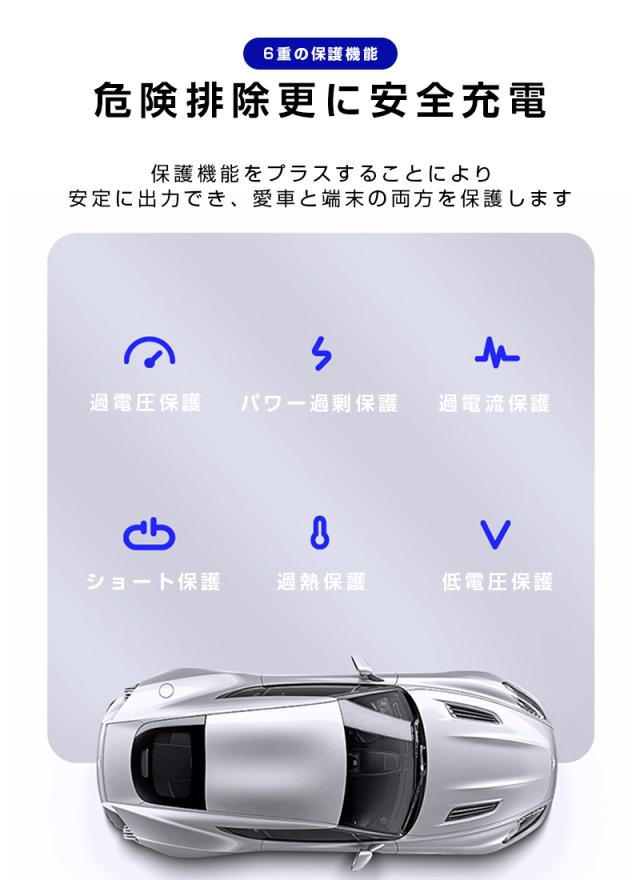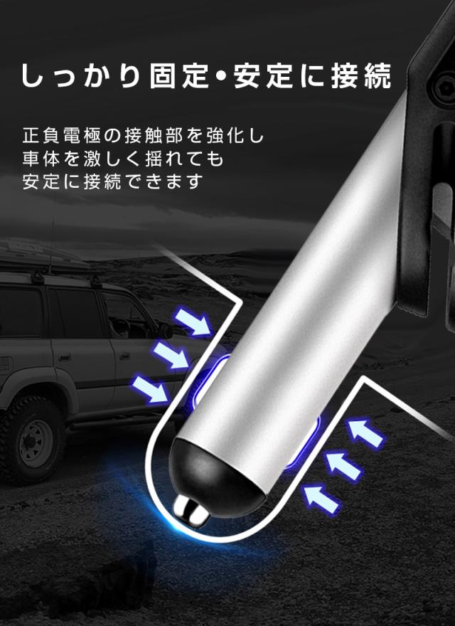 【車載充電機能】2つのUSBポートが搭載しており、2.1Aの高出力に対応できます。更に12Vと24Vの車輌どちらにも対応できて、利便性が高いです。