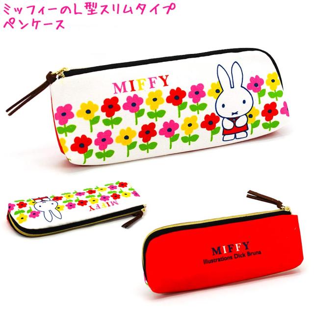 筆箱 ペンケース ボックス タイプ 女の子 向け L型 お花 と ミッフィー ホワイト オレンジ ( S20MLPW ) 中学生 高校生 一般 スクエア