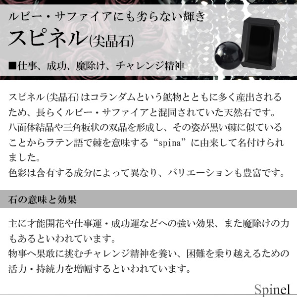 スピネル(尖晶石)は主に才能開花や仕事運・成功運などへの強い効果、また魔除けの力もあるといわれています。