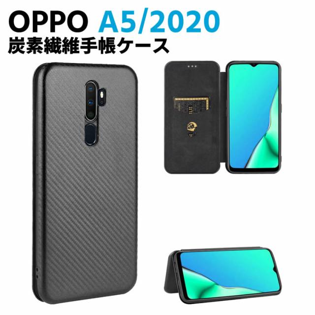 OPPO A5/2020 手帳型 薄型 カーボンファイバー スマホケース 炭素繊維カバー スマートフォンケース TPU 保護バンパー 財布型 マグネット式 カード収納 落下防止 ホルダ 横開き リンクストラップ付き
