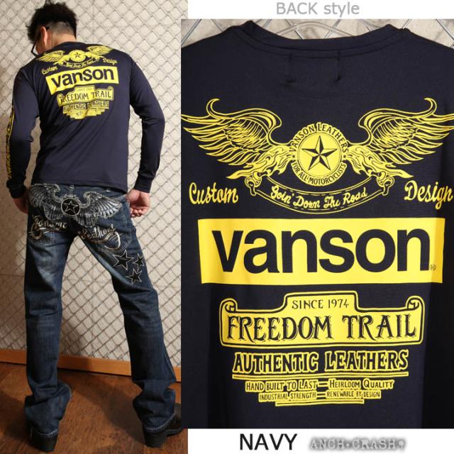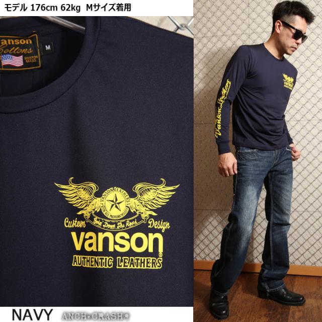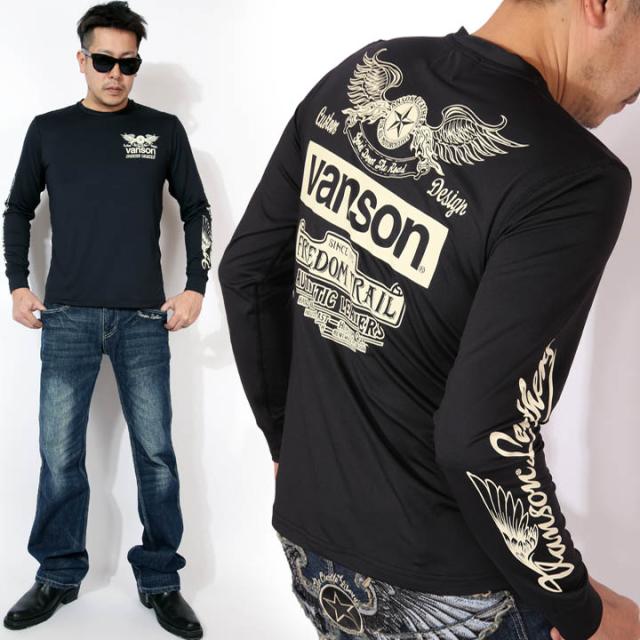 当店別注! VANSON バンソン ドライ長袖 Tシャツ エンブレム(ACVL-904)吸汗速乾 抗菌防臭 スタンダードサイズ【メール便送料無料】ポスト投函の為※日時指定・代引き・ラッピング不可