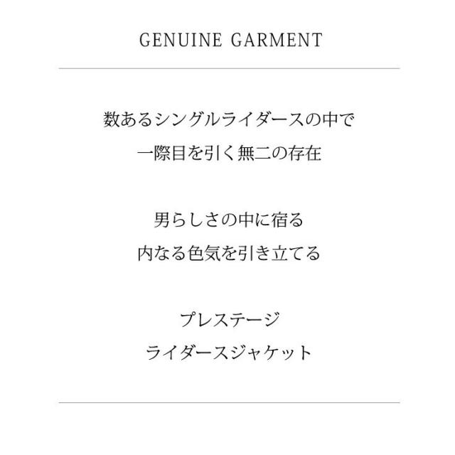 ライダース本来のタフでワイルドな要素を楽しむことのできるこのシングルライダースはカジュアルな定番ルックのデニム、男らしいラギッドなアメカジスタイルにはチノパン、少し上品できれい目なスタイルならスラックスなど、幅広いコーデにフィットします。