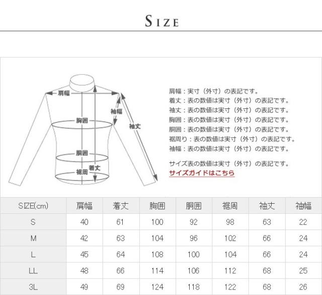 肩幅/着丈/胸囲/胴囲/裾周/袖丈/袖幅(cm)