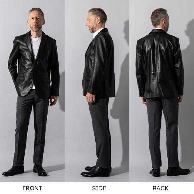 着易さを考慮し少しゆとりをもったフィット感で仕立てたテーラードジャケットです。レザー素材の上品で高級感溢れる特性を生かし、着用するだけで清潔感がありお洒落、さらにどこかワイルドで大人の男の色気を纏うことができる、そんな1着です。