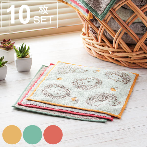 ミニタオル 25×25cm 10枚セット イーゲルタオルチーフ ハリネズミ セット まとめ買い ハンカチ ハンドタオル タオル ( たおる 綿 手洗い 綿100% コットン 来客 おしぼり 持ち歩き デイリータオルハンカチタオル )