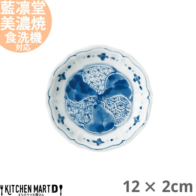 藍凛堂 梅祥瑞 RI輪花三五深皿 丸皿 12×2cm 美濃焼 国産 日本製 プレート 小皿 醤油皿 深い おしゃれ 染め付け 青 陶器 磁器 丸 丸型 食器 中華 洋食 和食 おしゃれ 料亭 カフェ 業務用 レンジ対応 食洗機対応 ラッピング不可