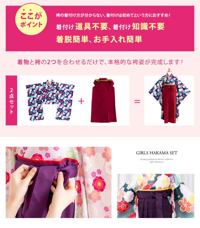 (簡易袴セット キッズ) 袴セット 卒園式 女の子 キッズ ガールズ 袴 卒業式 10colors 保育園 幼稚園 ひな祭り 5歳 6歳 7歳 振袖 着物 二尺袖 初心者 着付け 簡単 簡易