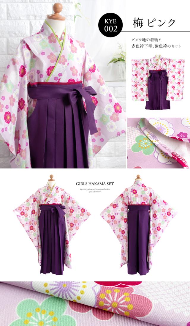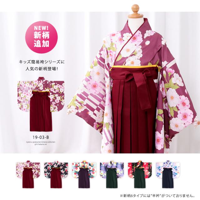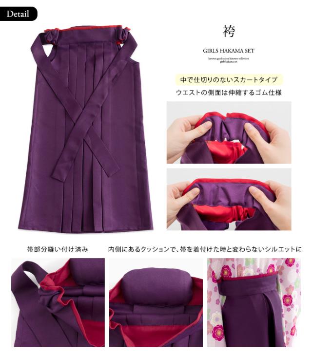 卒園式・卒業式等でお召し頂ける、キッズサイズの簡易袴2点セットです。