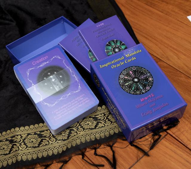 万華鏡が作り出す紋様のような美しい曼荼羅に思わず目を奪われる、そんなカードが登場しました。この『マンダラオラクルカード』は、ヒーリングアーティスト秋山峰男氏が描く点描の曼荼羅に、セドナ在住のヒーラーであるクレッグ・ジュンジュラス氏がリーディングしたメッセージを添えたものです。特徴的なのは、メッセージよりも先に絵が存在していたということ。秋山氏が描いた曼荼羅を見たシャーマンが、「このマンダラには、ヒンディーの奥義の情報が詰まっている」と呟いたことから、このカードが誕生したそうです。