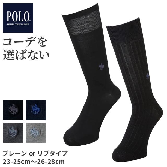 グンゼ POLO ビジネスソックス ワンポイント プレーン リブ ポロ 23 24 25 26 27 28 cm