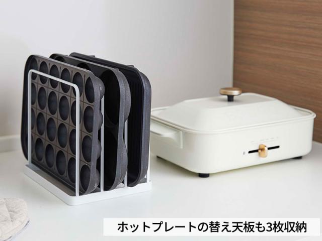 ホットプレートの替え天板の収納に平面プレート・たこ焼きプレート・グリルプレートなど複数あるプレートの収納にも便利。