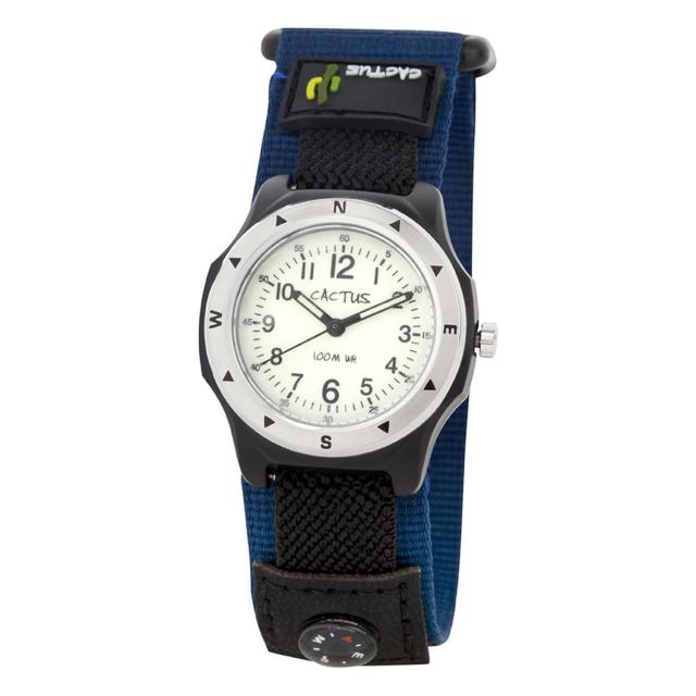 そんなCACTUSから、本格ボーイズ向けウォッチが登場しました。キッズウォッチながら、10気圧防水の高い防水性能を誇る本格仕様。バンドは着脱がラクにできるマジックテープ式で、好奇心旺盛な男の子の冒険心を刺激する方位コンパスも搭載しました!さらに、文字盤・針には蓄光作用があり、暗闇でも視認性ばっちり。まさにアクティブなボーイズにぴったりのアイテムです。