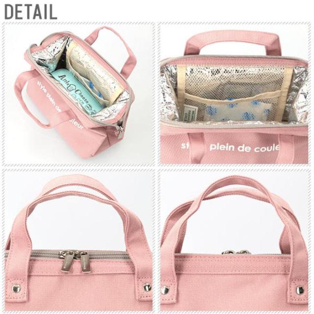 ダブルファスナー仕様で、開き口にワイヤーが入っているので、大きく開き、物が出しやすく便利です。保温、保冷機能もあるので安心。内側には保冷剤が入るネットポケット付きです。ランチバッグとしてはもちろん、ちょっとしたお出かけにも使えます