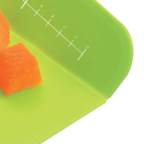 まな板の端にメモリが付いているので、食材を測りながら均等に切ることができます。抗菌剤入りなので、ニオイの強い食材や、魚・肉などの生もの専用として使ってもOKです。いつでも衛生的にお使いいただけます。