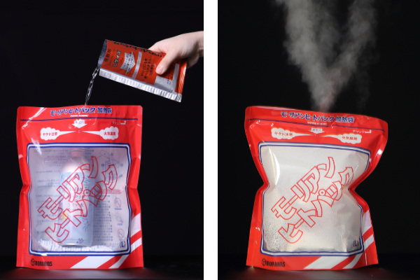 水を注ぐだけで発熱する携帯用あたためキット