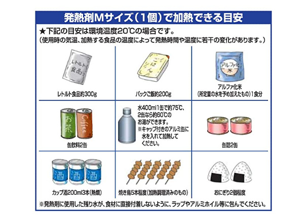 | 内容量 | 1セット(発熱剤:2個、加熱袋:1個) |