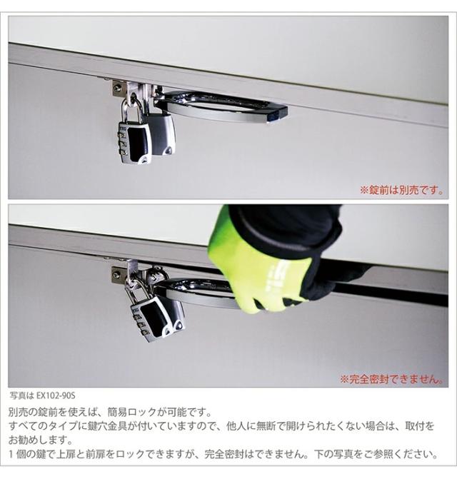 サビに強いZAM鋼板(高級外壁材でも使われています)とステンレスの2種類の材質から選べます。 ・サビにくく劣化しにくいZAM鋼板、スレンレスの2種類から選べます、業務用としても安心してお使い頂けます。 ・設置場所にあわせて2サイズより選べます。 ・上扉、前扉開いて大きな物の出し入れに便利。 ・安心の日本製!金属加工技術で有名な新潟県の燕三条ブランド商品。 ・盗難防止にカギ(市販の南京錠等)も付けられます。 |