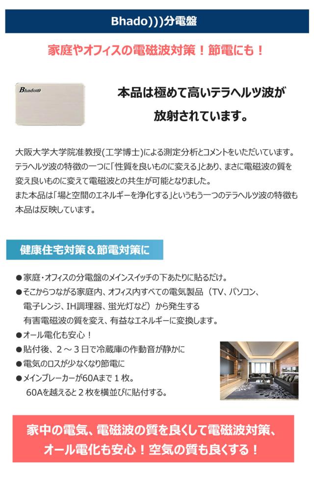 分電盤のメインブレーカーの下に貼り、家庭・オフィスの全ての電気、電磁波を有用なBhado)))エネルギーに。