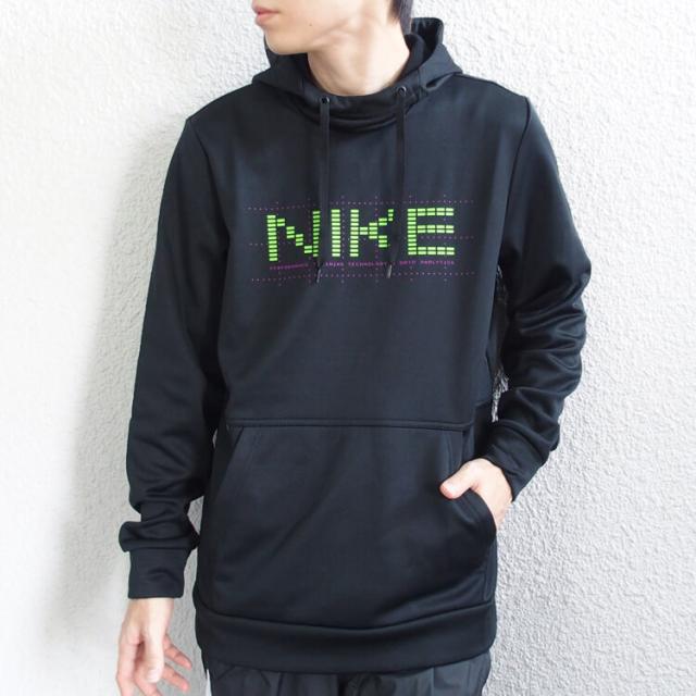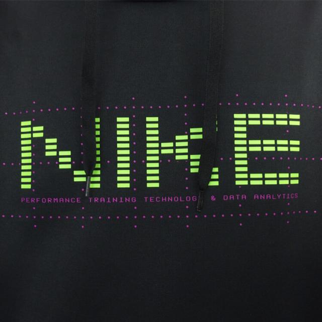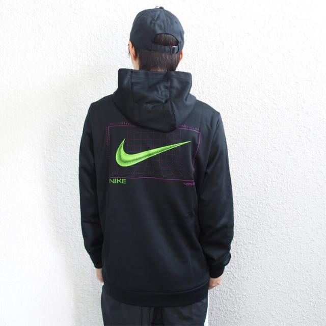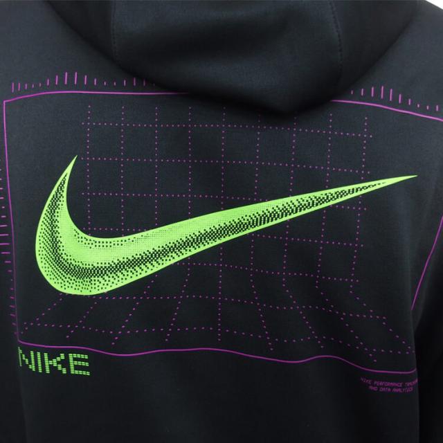 ナイキ サーマ パーカーは、トレーニングに欠かせないテクノロジーの役割を称えるグラフィックが特徴。