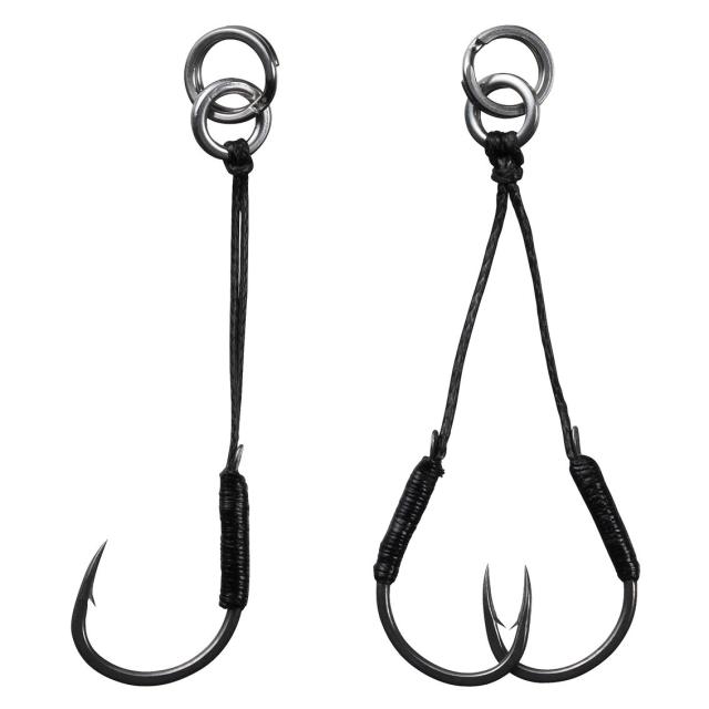 ●ジギングは針先が命。ショアからの少ないチャンスを確実にモノにするために鈍ったフックや錆びたフックは惜しみなく交換が必要。余計な仕様を排したベーシックだが、刺さりには妥協しないサクサスのシングルとツインの2タイプのアシストフックをバリューにパッキング。