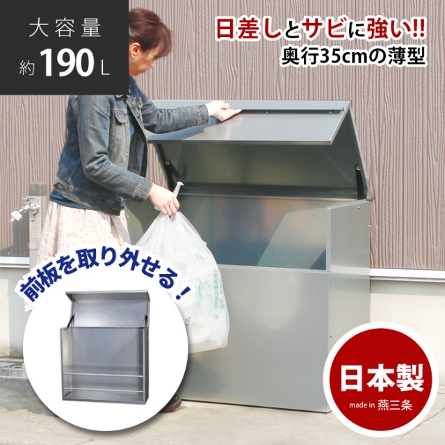 ダストボックス 日本燕三条製 屋外 大型 前板を外せる 分別 ごみ箱 大容量 業務用 家庭用 収納 ふた付き ゴミ収納 物置 幅90 奥行35 EX101-003 ゴミ置き場