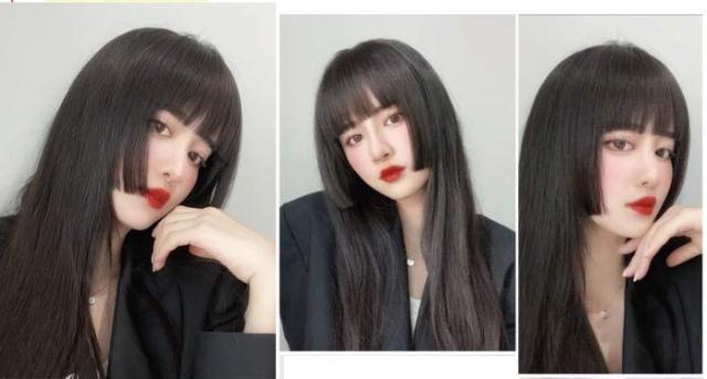 フルウィッグ ロングウィッグ 姫カット レディース 小顔 ヘアネット付 ふんわり前髪 コスプレ ハロウィン wig うぃっぐ かつら 韓国ヘア パッツン ストレート 自然 仮装 dp018x1x1c0