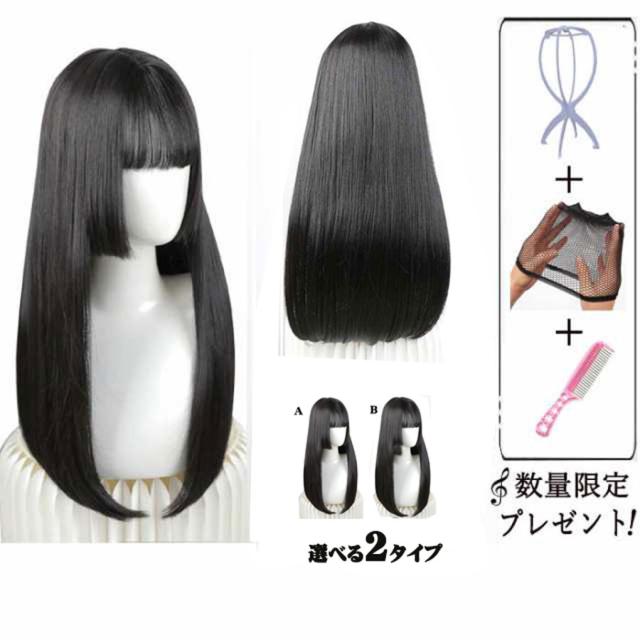 【送料無料】ロングウィッグ フルウィッグ 姫カット ストレート レディース 小顔 ヘアネット付 ふんわり前髪 コスプレ ハロウィン wig うぃっぐ かつら