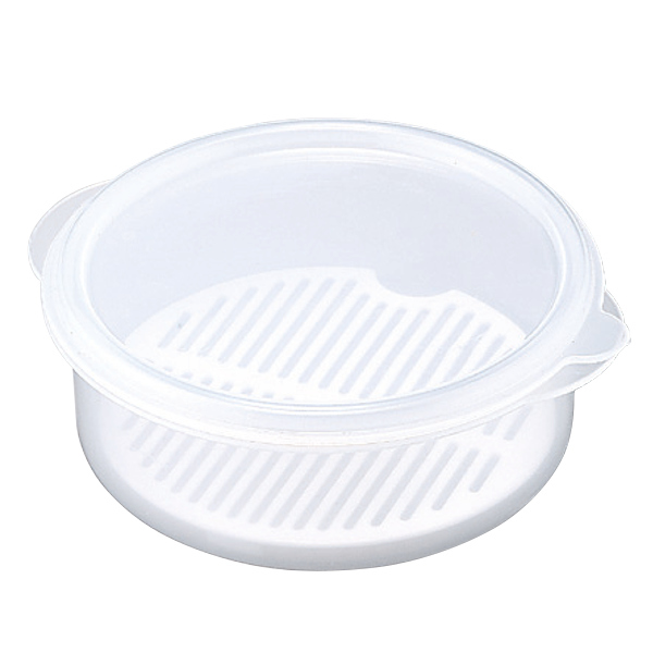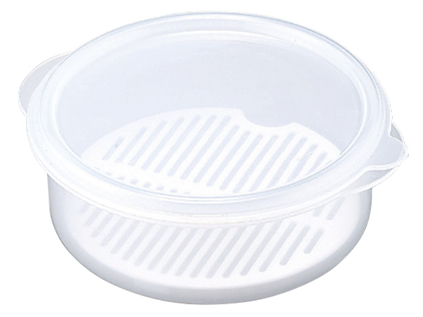 ●容器には目皿が付属しているので、電子レンジ加熱にも重宝します。(※フタを外してご使用下さい。)