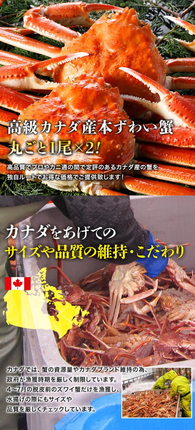 かに 蟹 カニ ズワイガニ 高級カナダ産 姿ずわい2尾 約1.1kg(1kg〜1.2kg) 殻付き 大サイズ ボイル 送料無料 冷凍便 ギフト プレゼント 食品 グルメ 海鮮 刺身 ギフト プレゼント