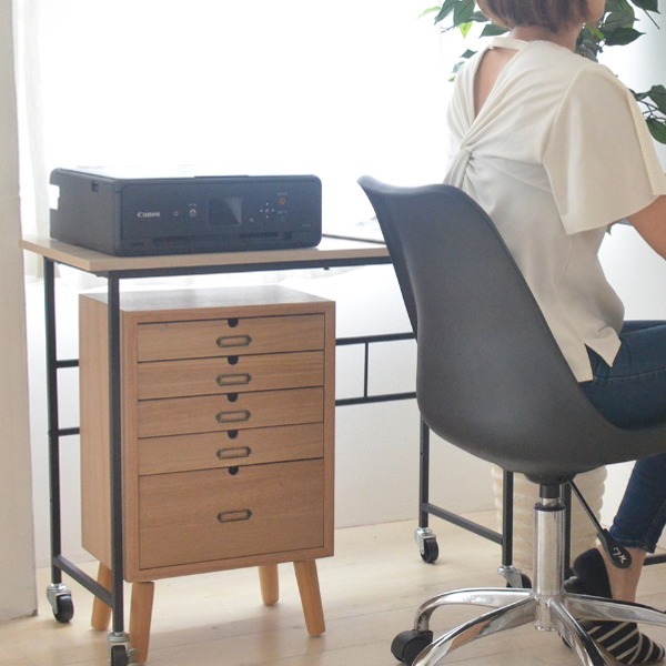 スリムサイズで玄関や廊下などの狭い場所に置いても圧迫感がありません。デスクの下にも収まる高さで、耐荷重は10kgと頑丈なので、デスク脇の袖机やサイドテーブルとしても使えます。ソファー横のサイドテーブルとしてご使用していただくと、リモコンなどの小物が片づけられて便利です。