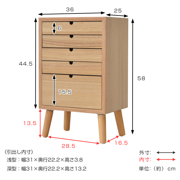 多段チェスト 5段 北欧風 タモ突板仕上 リビングチェスト 幅36cm ( チェスト 収納 サイドチェスト リビング収納 収納チェスト 木製 木目 タモ 北欧 ナチュラル シンプル 引出 引出し 引き出し おしゃれ )