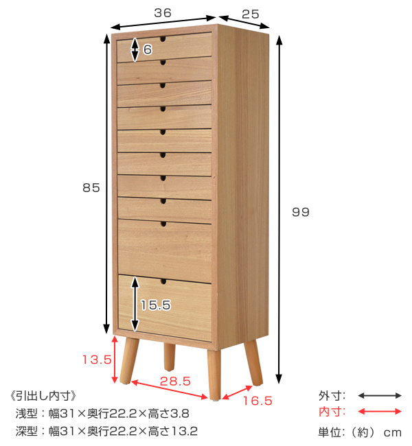 多段チェスト 10段 北欧風 タモ突板仕上 リビングチェスト 幅36cm ( チェスト 収納 サイドチェスト リビング収納 収納チェスト 木製 木目 タモ 北欧 ナチュラル シンプル 引出 引出し 引き出し おしゃれ )