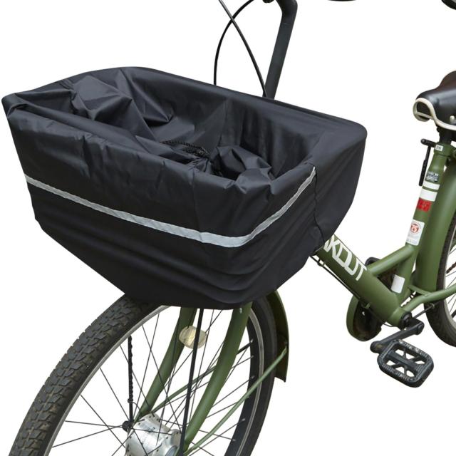 ひったくり・雨濡れ防止に!安全バスケットカバー☆大きな荷物もすっぽりカバー、雨やほこりを防ぎます。夜間にも安全な反射テープ付。標準的な自転車の丸カゴ角カゴにご利用頂けます。