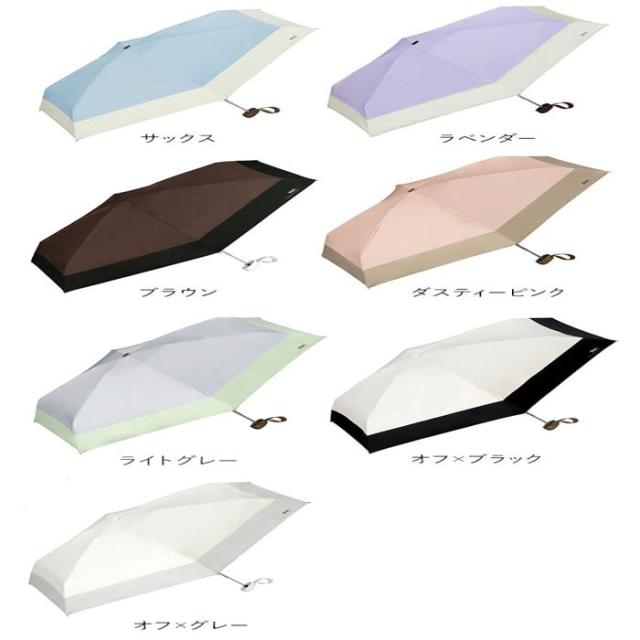 wpc.の晴雨兼用折り畳み傘、バイカラーの2色切り返しの落ち着いたカラーが特徴的な傘です。日傘としても使えて、生地に防水加工がされているため雨傘としても使えます。バッグなどに入れておけば、強い日差しにもちょっとした雨などにも対応できる、一年中使える便利な折り畳み傘。wpc.なのでデザインも質感も良い商品です