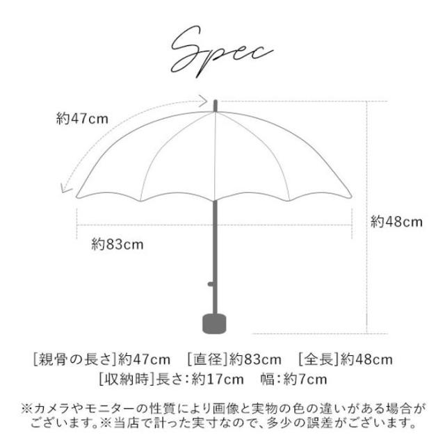 [親骨の長さ]約47cm [直径]約83cm [全長]約48cm [収納時]長さ約17cm 幅約7cm ※サイズは当店平置き実寸サイズです。実際の商品とは多少の誤差が生じる場合がございます。あらかじめご了承ください。