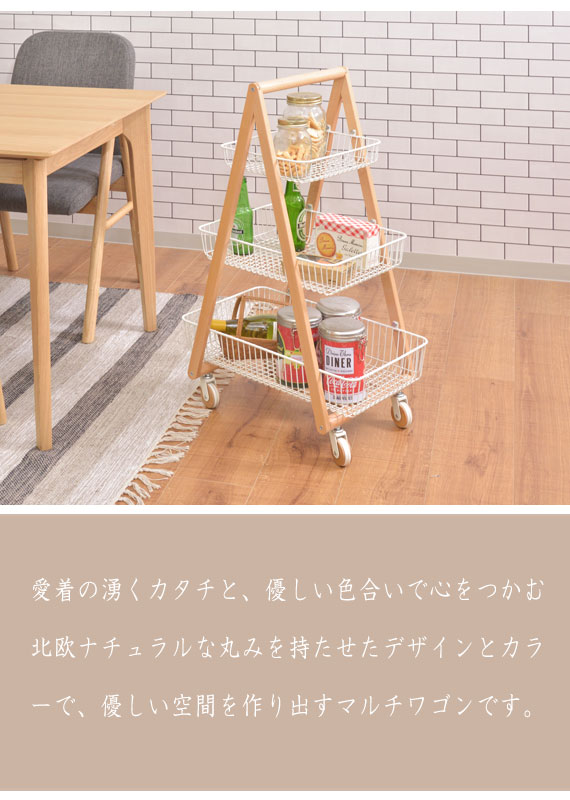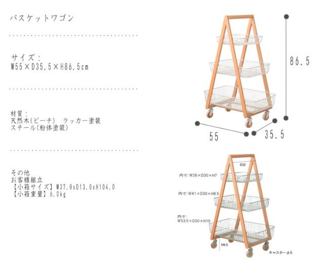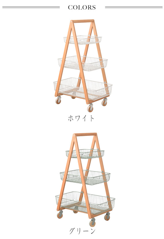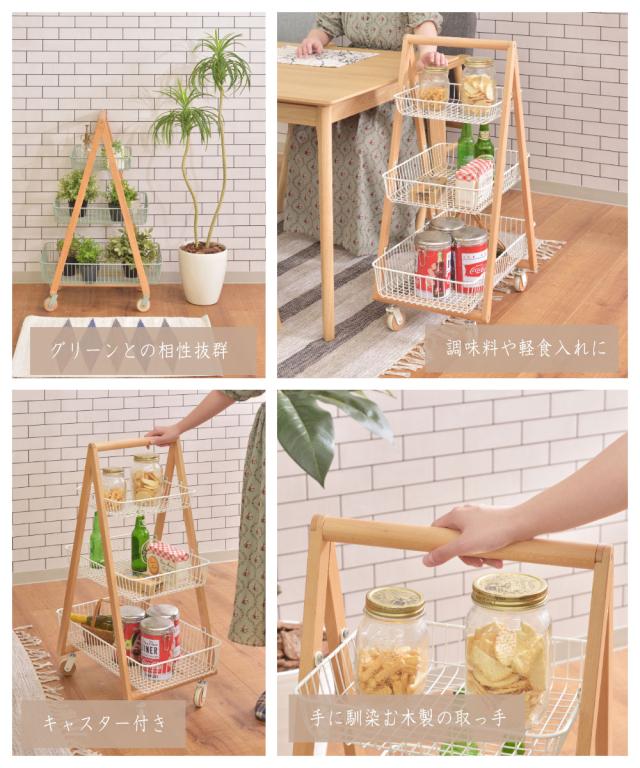 Sylph バスケットワゴン (バスケット ワゴン 植物 小物 雑貨 調味料 キャスター付き 取っ手 天然木 ビーチ ラッカー塗装 北欧 ナチュラル ホワイト グリーン おしゃれ おすすめ)